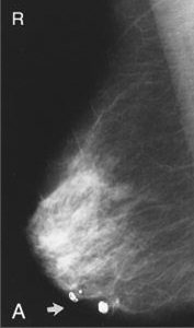 Εδώ φαίνεται ένα μικρό τμήμα μαστού με ύποπτες αποτιτανώσεις που αφαιρέθηκε.